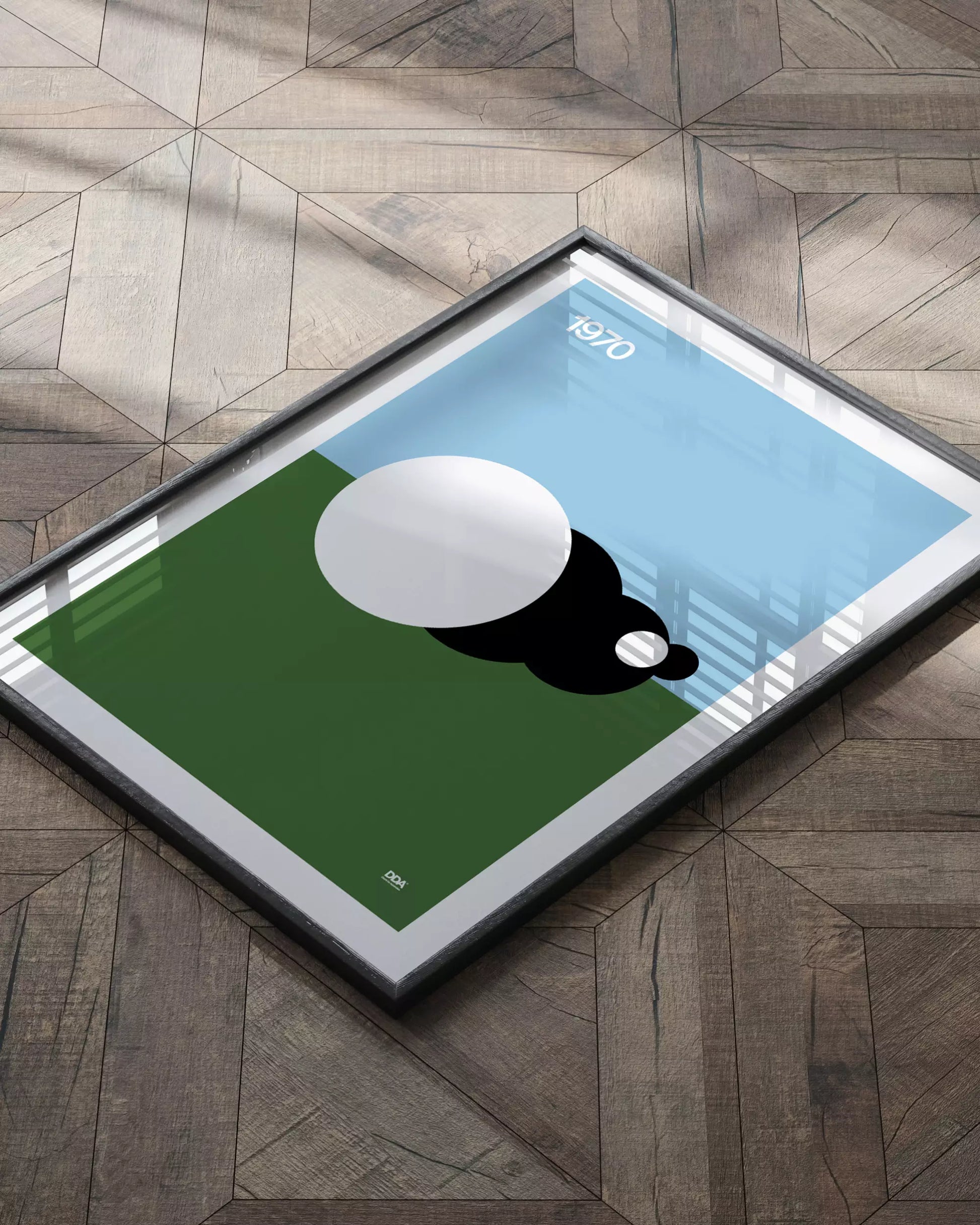 Le immagini geometriche del poster rievocano simbolicamente la mucca, trasformando la sua figura in una composizione astratta che evoca sia la semplicità che la complessità dell'album, aggiungendo un tocco di raffinatezza visiva a qualsiasi spazio moderno.
