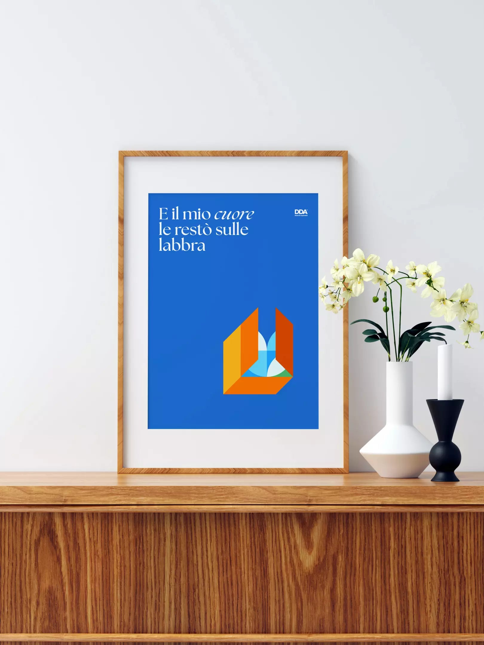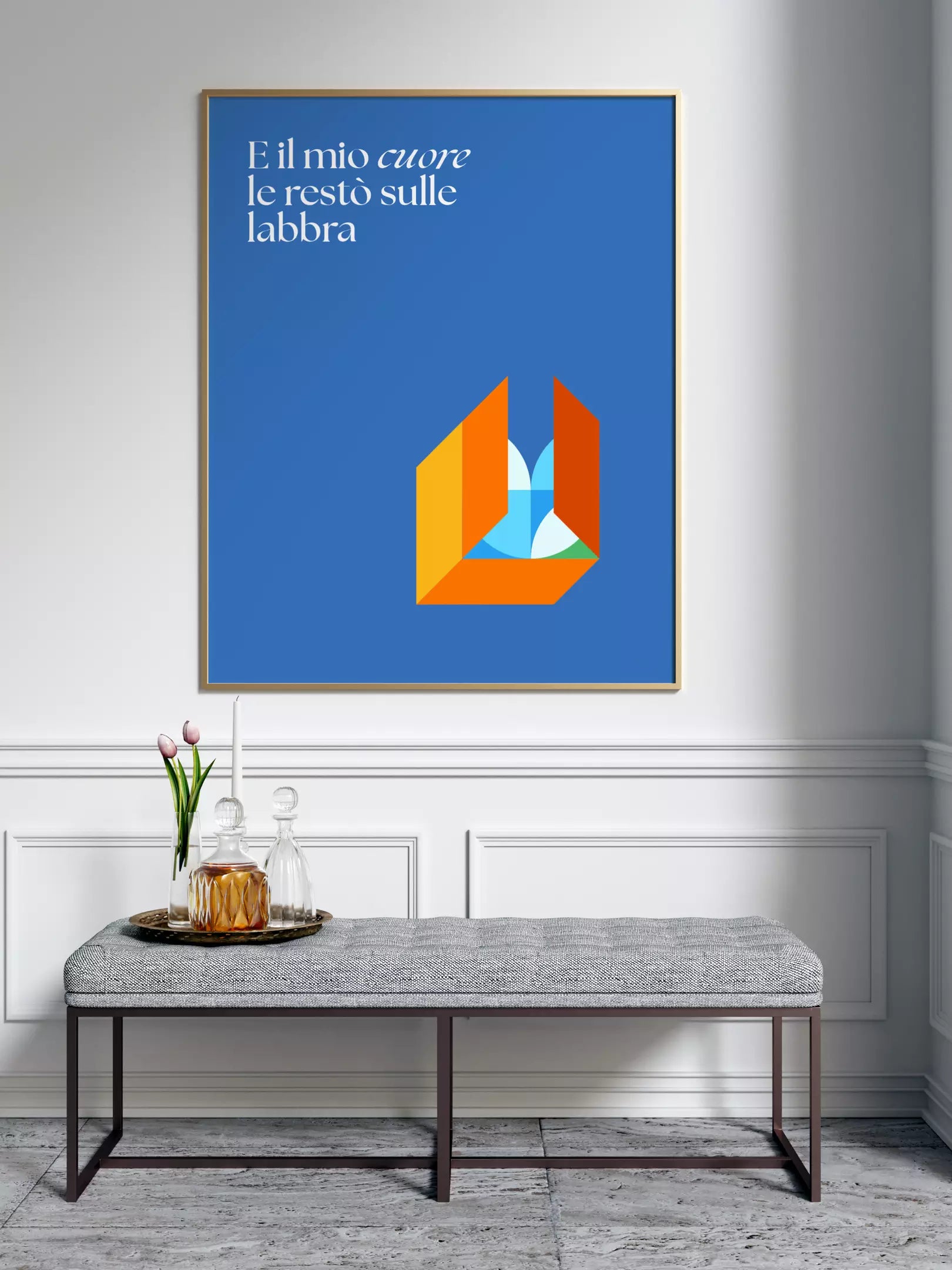 Un poster che celebra Un malato di cuore (1971), uno dei brani più intensi e commoventi di Fabrizio De André. Una canzone che parla di amore e fragilità con parole delicate e malinconiche. Il design blu richiama la profondità del testo, con linee essenziali che evocano emozione e introspezione. Un Disco da Appendere che porta poesia e bellezza sulle tue pareti.