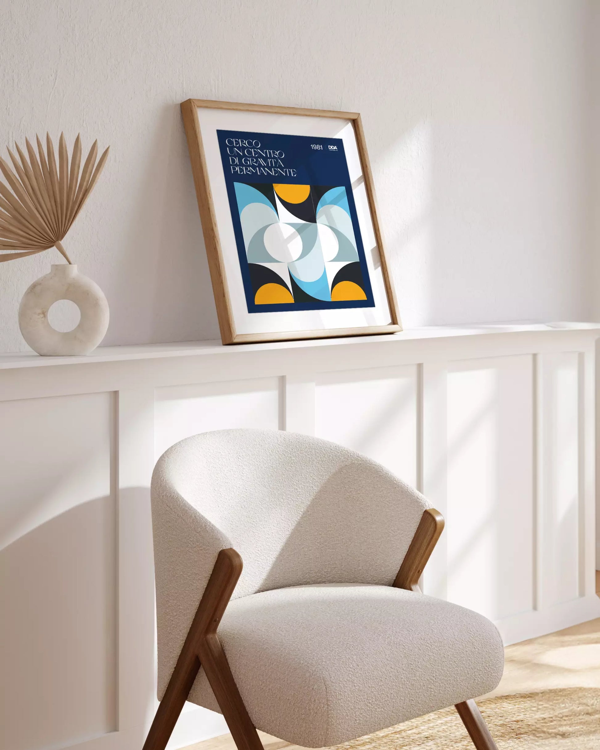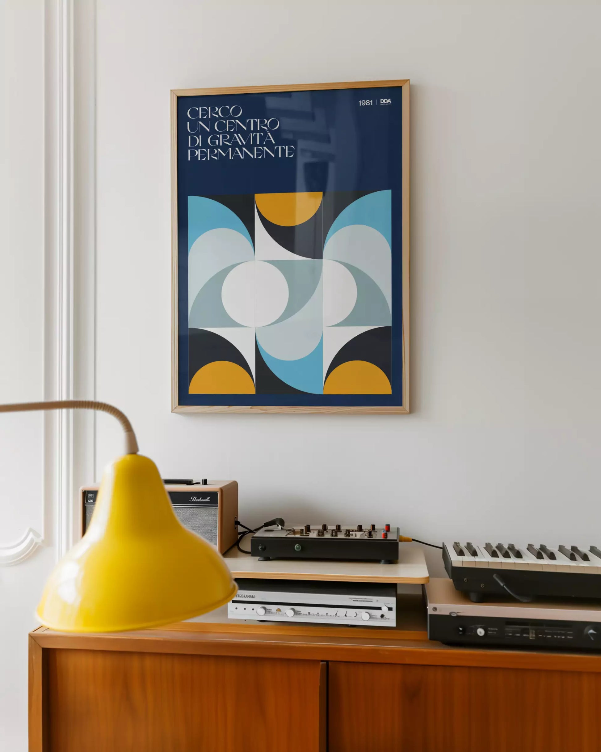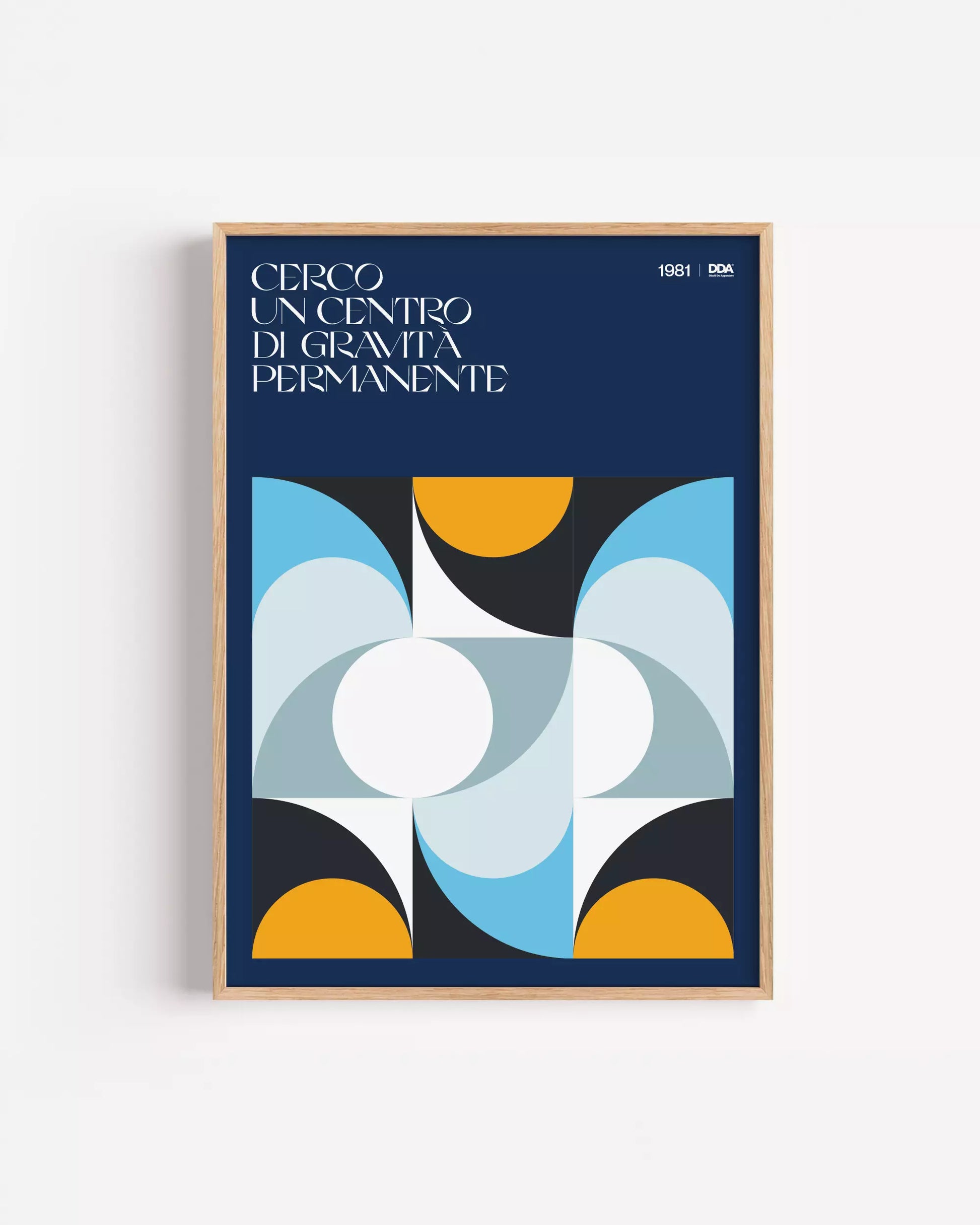 Questo poster rappresenta visivamente il cuore di un brano simbolo della discografia italiana, tratto dall'album "La voce del padrone" di Franco Battiato, disco che ha segnato una svolta nel panorama musicale italiano e internazionale. L’artista, con il suo stile unico e inconfondibile, ha saputo fondere musica e filosofia in una visione profonda e spirituale, esplorando temi universali attraverso testi complessi e melodie innovative. Il design del poster, con le sue forme geometriche intersecate e colori bilanciati, richiama questa continua ricerca interiore di un punto fermo. Le linee curve e i cerchi centrali simboleggiano il movimento perpetuo della vita, in un equilibrio fragile ma costante. Questo Disco Da Appendere, con la sua eleganza e il suo significato profondo, è l’aggiunta perfetta per chi desidera arredare il proprio spazio con carattere grazie ad un'opera che non solo valorizza l’ambiente, ma invita alla riflessione.