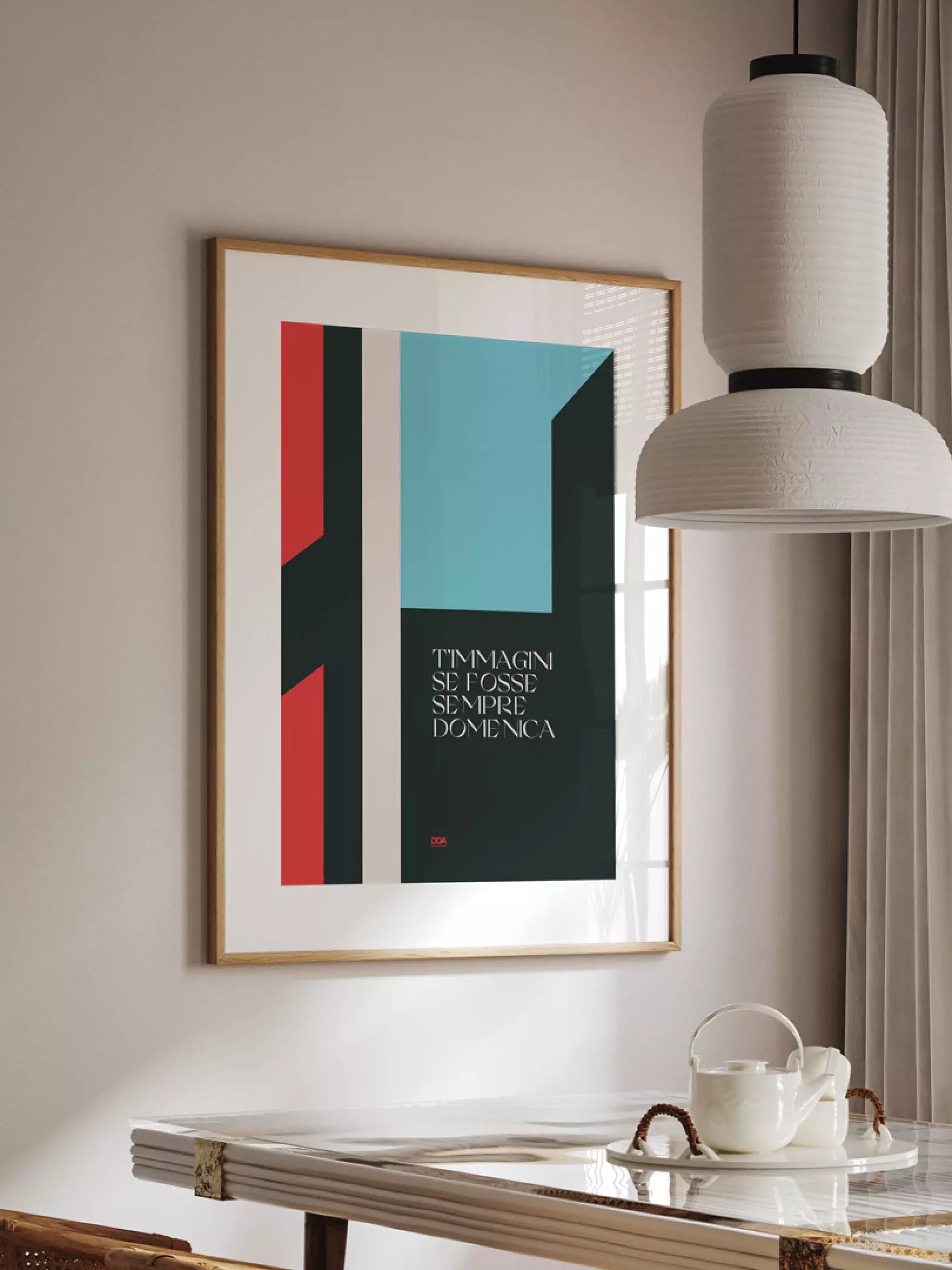 “T’immagini” è un inno che tutti conoscono, quel brano che accende il desiderio di evasione anche nei giorni più grigi. Questo poster minimalista lo rende visibile in casa: linee essenziali, contrasti netti, uno stile che sa essere forte e discreto allo stesso tempo. Un’ode visiva al rock italiano di Vasco che non si dimentica.